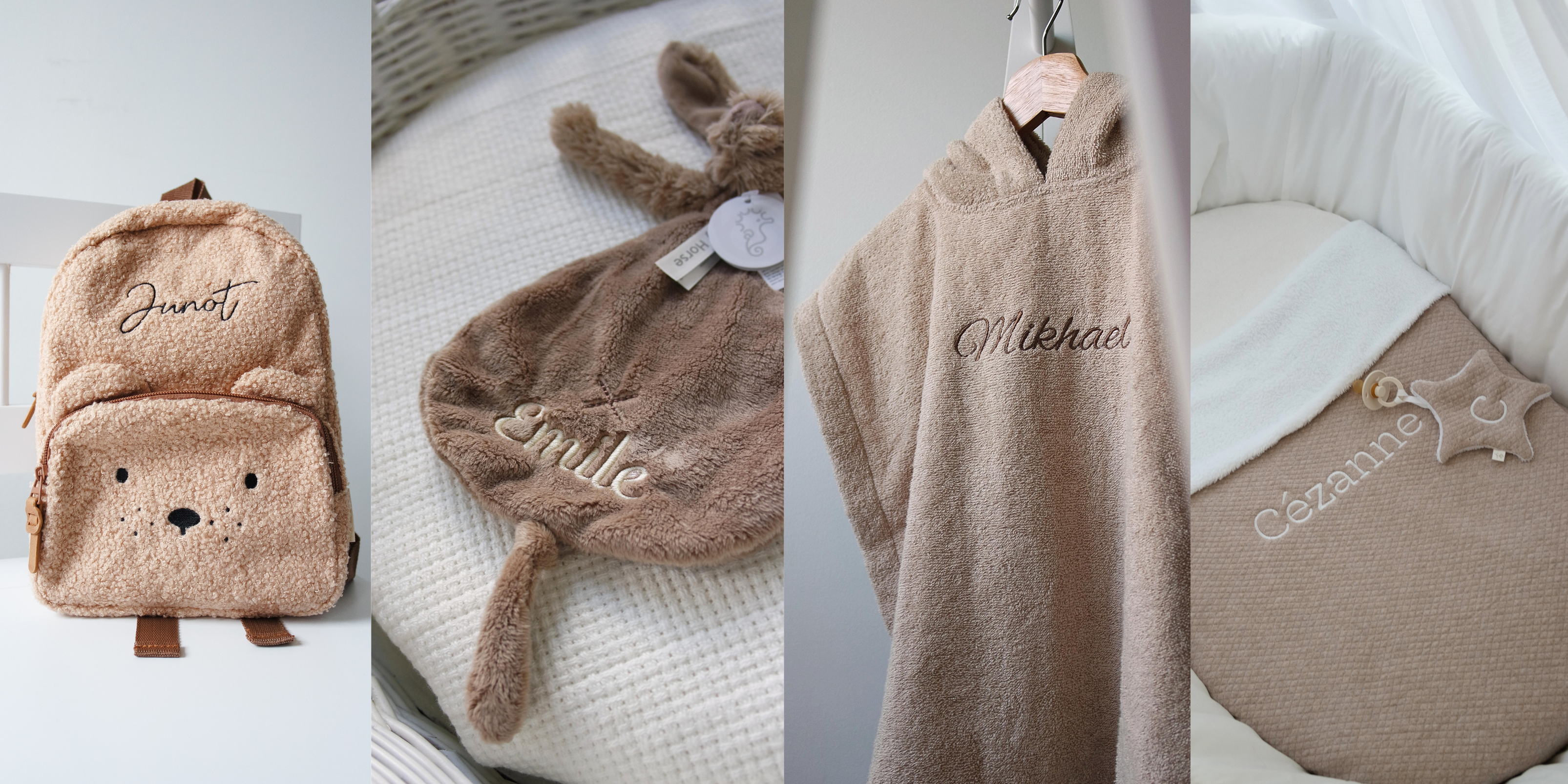 Elk item maak ik persoonlijk voor jou, het borduren van de naam zit altijd in de prijs inbegrepen.