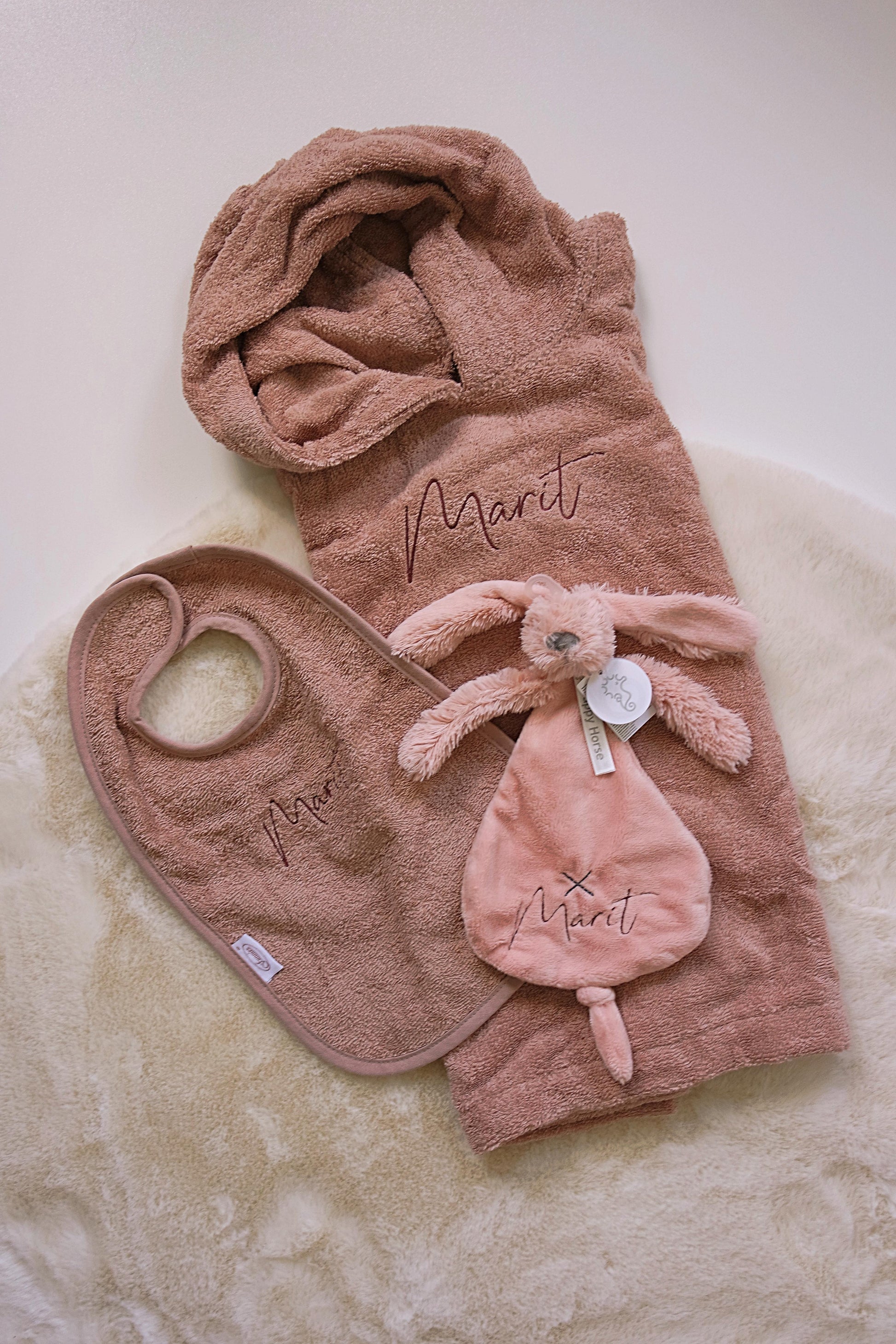 Box Badponcho, Slabbetje en Rabbit Richie met naam