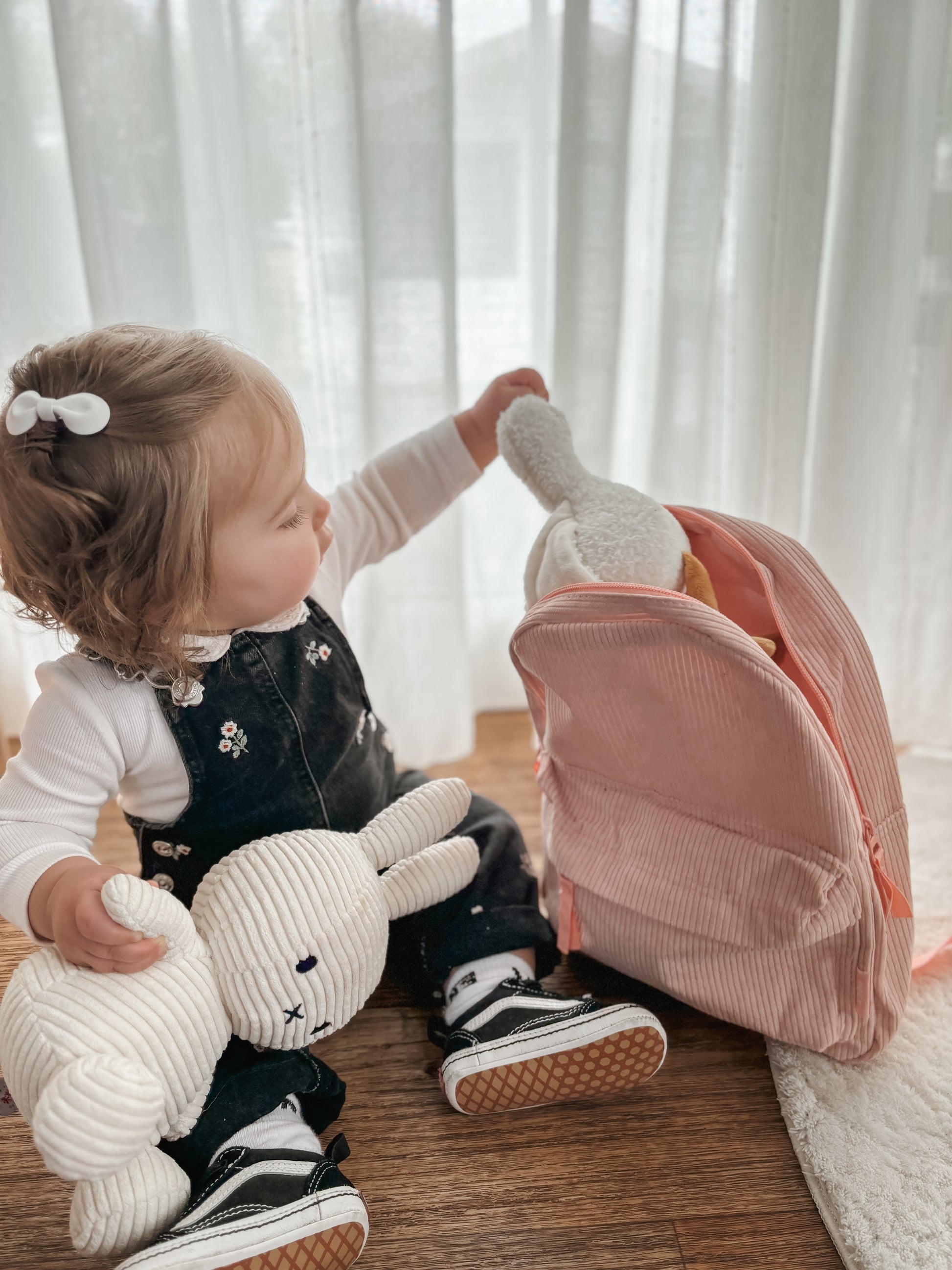 Dit rugzakje uit de collectie Be soft and Kind van Prêt is perfect om overal mee naartoe te nemen. In het grote hoofdvak kun je een broodtrommel en drinkfles meenemen, in het kleine voorvakje met rits kun je dingen stoppen die je niet kwijt wil maken. Deze tas is gemaakt van een super zachte Corduroy en dat maakt deze rugzak helemaal af! De schouderbanden zijn verstelbaar zodat jouw kindje hem altijd goed past.