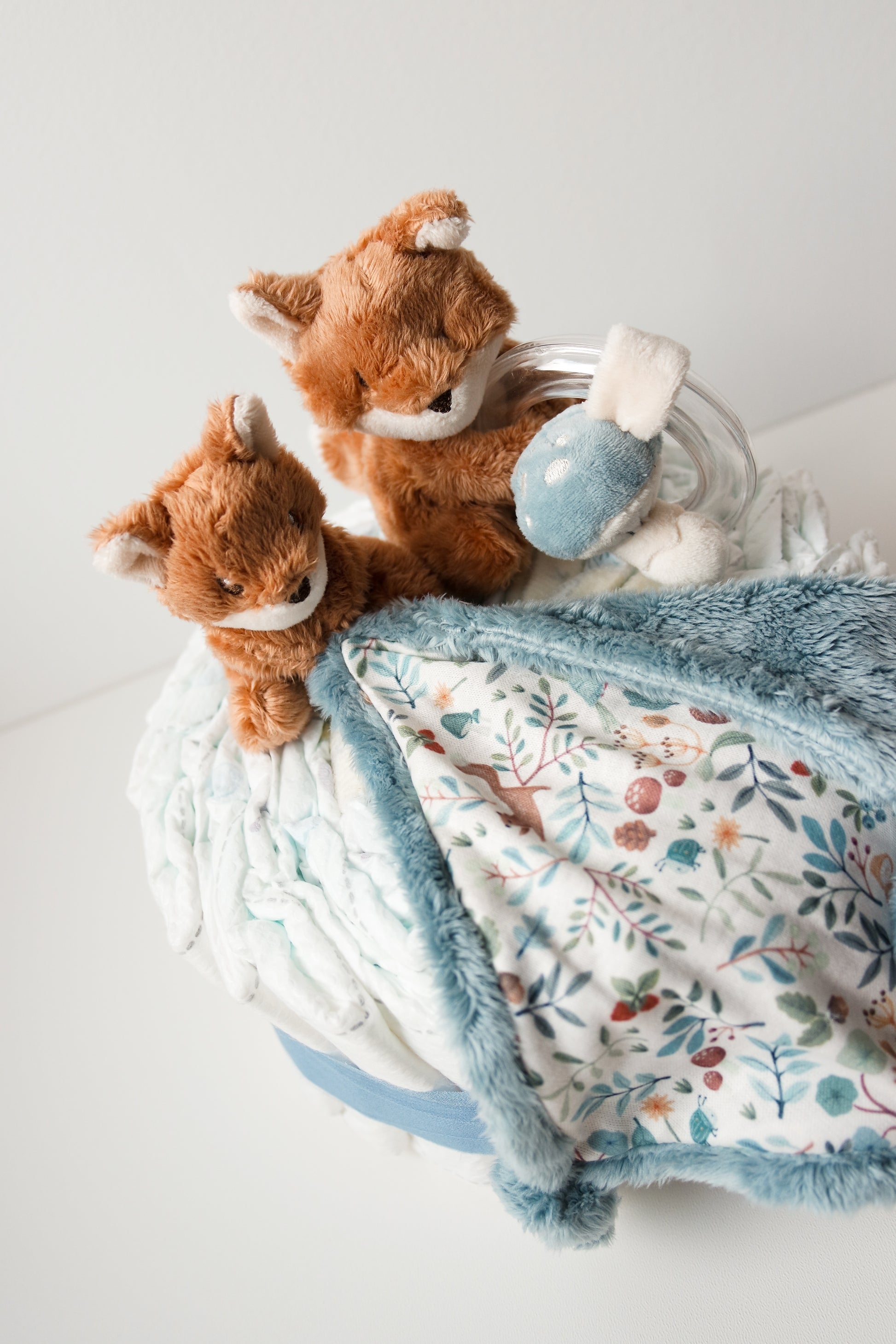 Deze speelse luiertaart is het perfecte kraamcadeau voor kleine natuurliefhebbers in de dop. De vosjes uit de Forest Friends collectie van Little Dutch zorgen voor een vrolijke en herkenbare toets. Het zachte knuffeldoekje kan bovendien gepersonaliseerd worden met de naam van het kindje, wat dit geschenk nog unieker maakt.