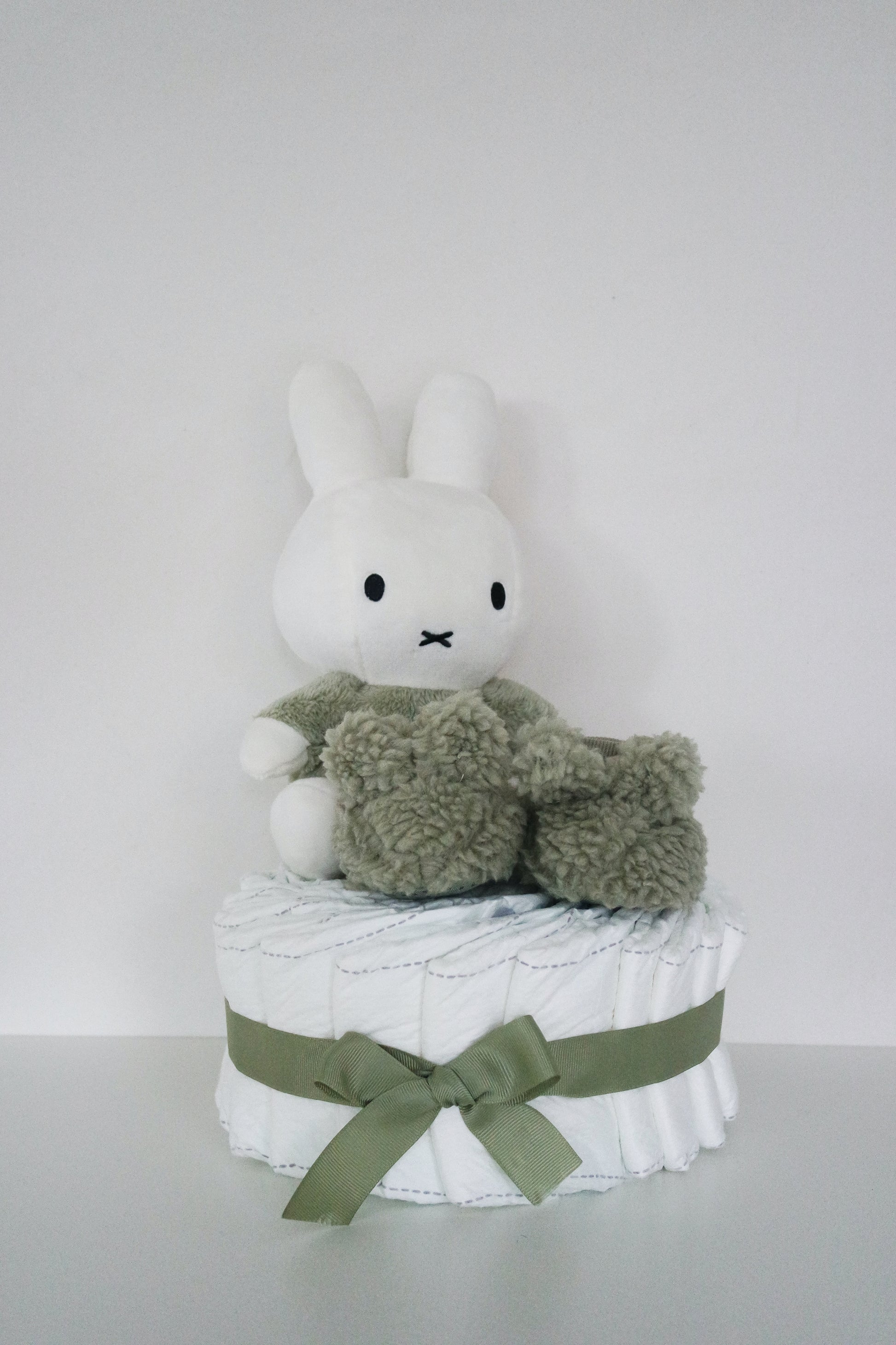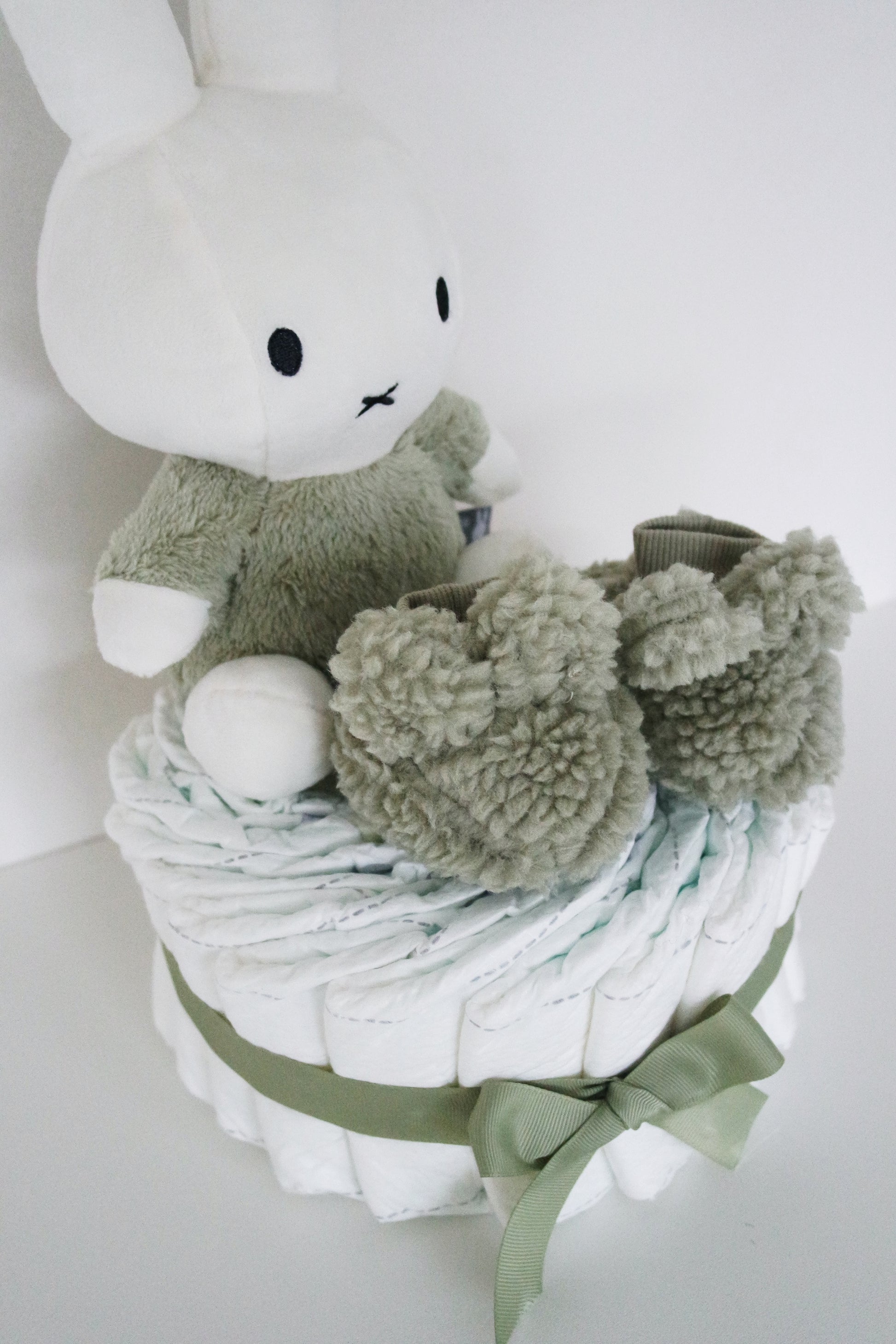 Perfect voor een geboorte, babybezoek of babyshower. Dankzij de gebruikte luiermaat kan de taart eerst nog even pronken op de kamer voordat de inhoud in gebruik wordt genomen.