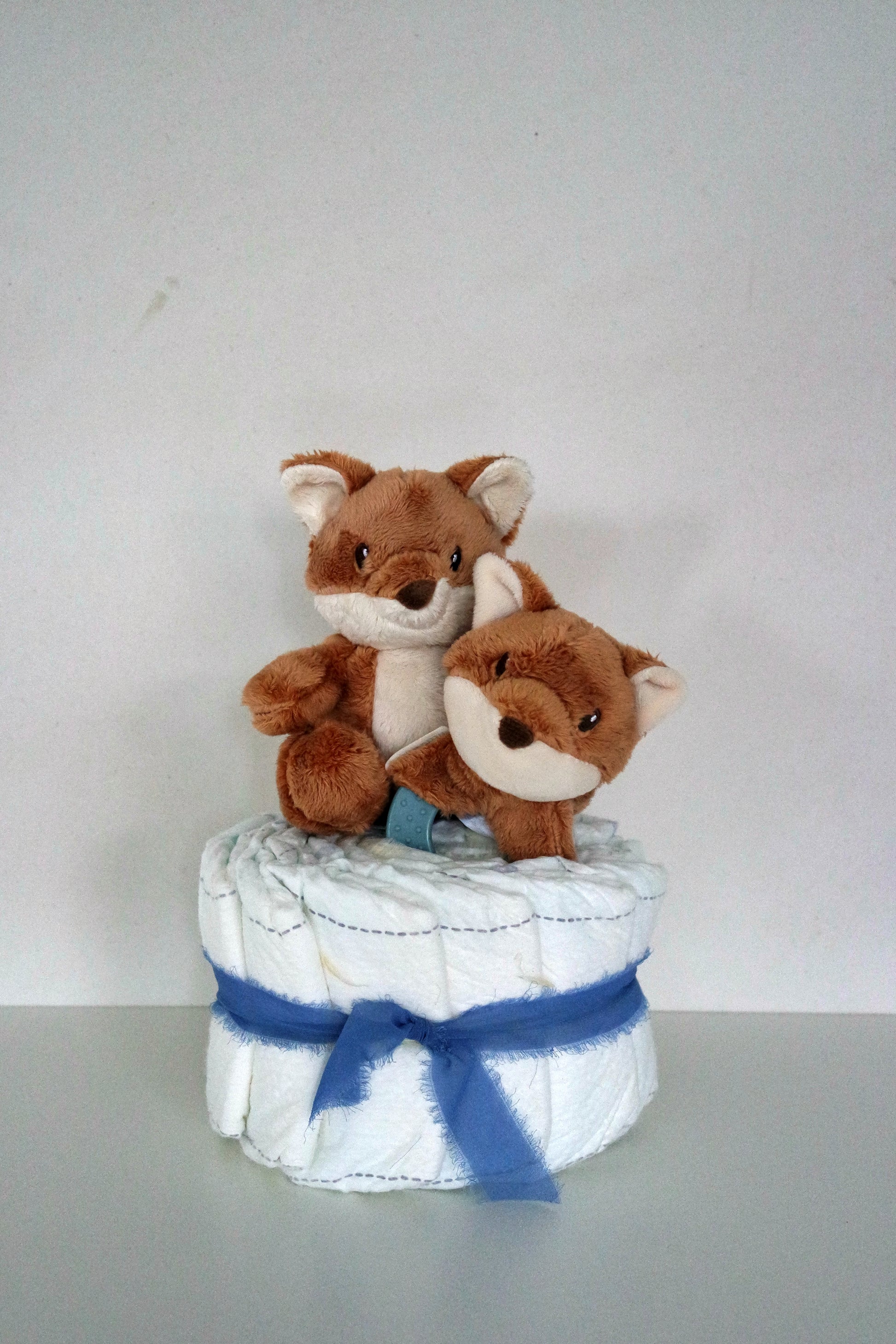 Deze luiertaart met knuffelvosje is altijd klaar voor een stevige knuffel en avonturen vol spel en fantasie. Deze luiertaart bevat ook een bijtring voor verzachting als er tandjes doorkomen. En het leuke vosje op de ring stimuleert de hand-oogcoördinatie en de nieuwsgierigheid van kindjes. e te knuffelen.