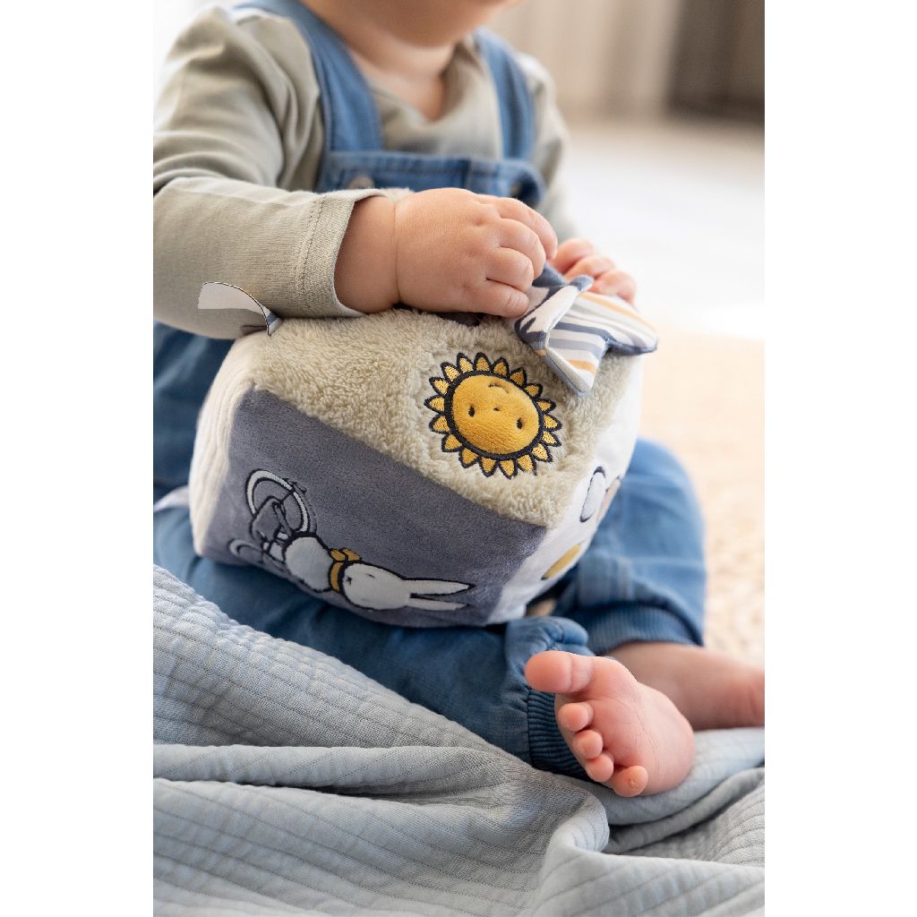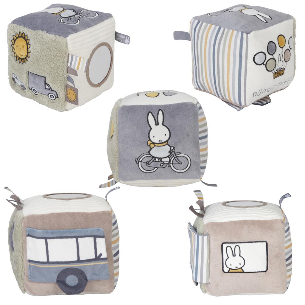 Je kindje zal zich niet snel vervelen met deze leuke activiteitenkubus van nijntje. Op elke zijde van de kubus is iets anders te ontdekken zoals leuke afbeeldingen, verschillende stoffen, labeltjes om aan te voelen en een spiegeltje. Ook zit er binnenin de kubus een belletje voor een leuk rammeleffect.