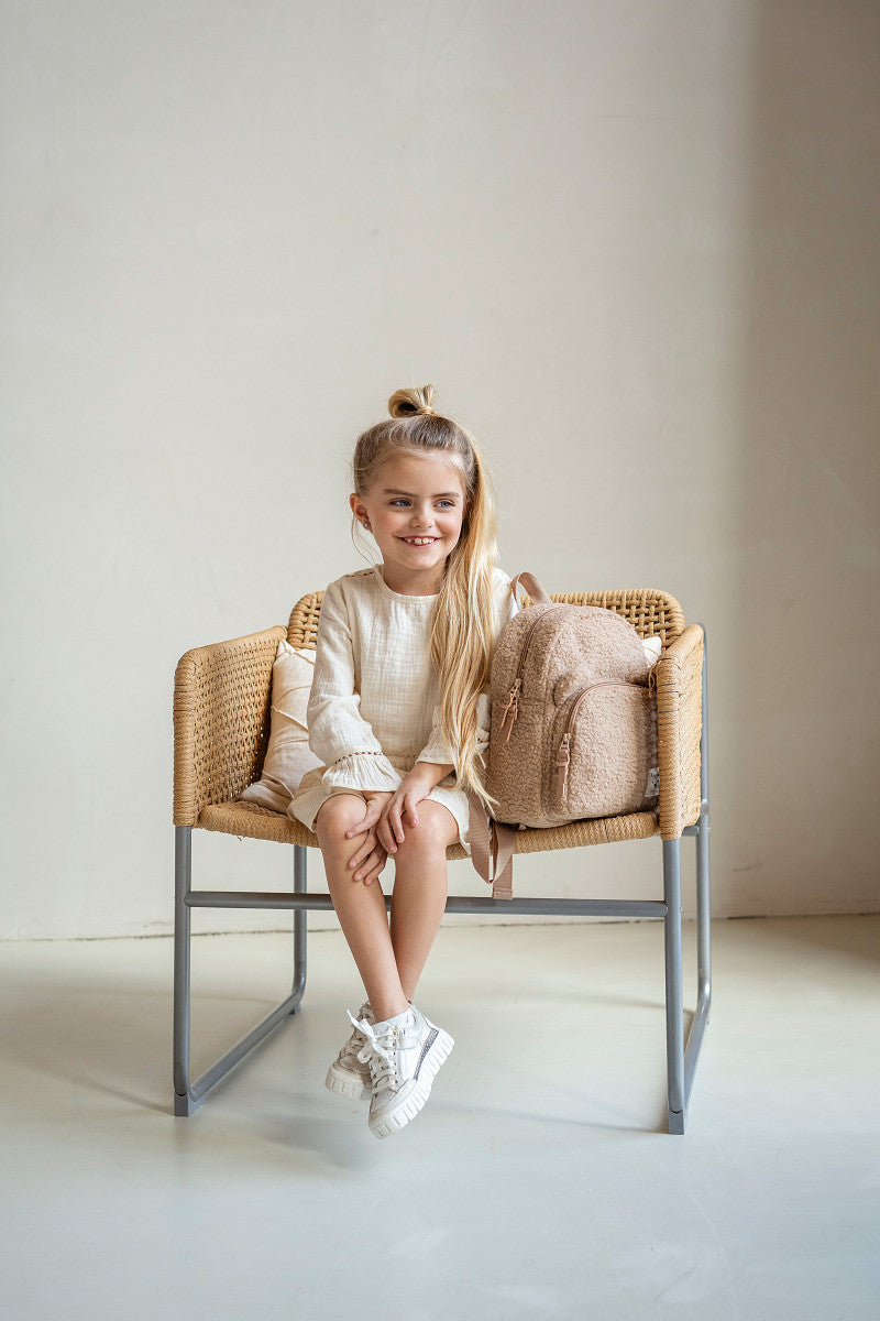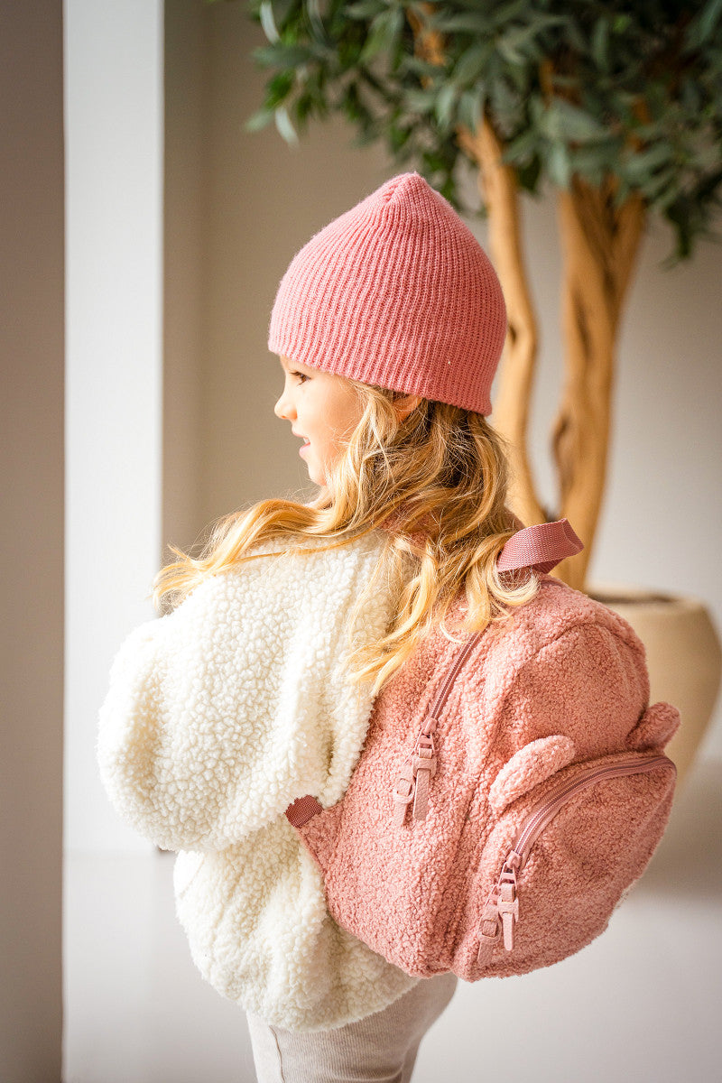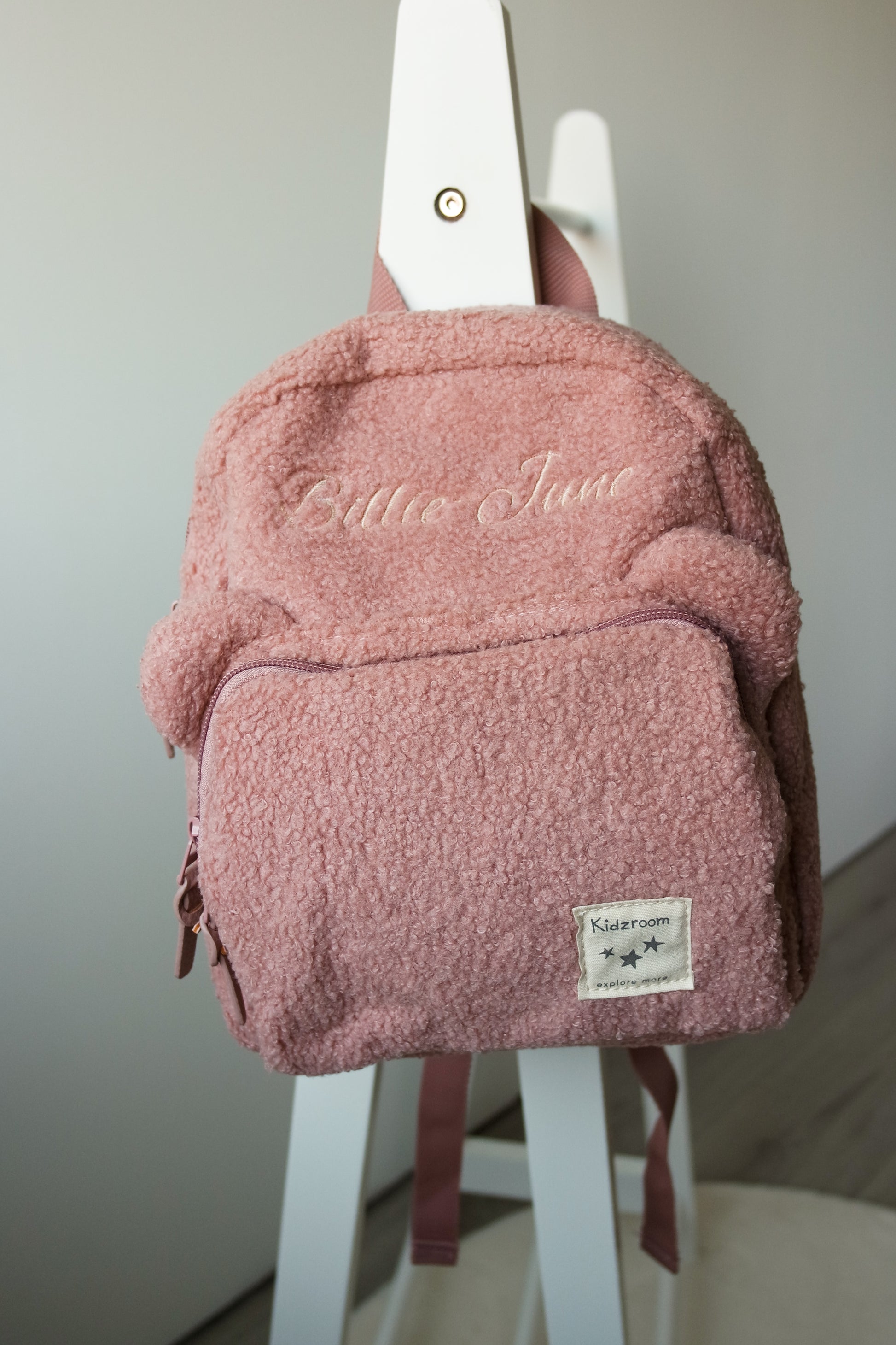 Deze leuke rugzak van Kidzroom uit de Beary Excited collectie is volledig van teddystof met 2 berenoortjes op het voorvak! De tas is roze van kleur en heeft een ruim hoofdvak die sluit met een rits. Verder heeft de tas nog een voorvak. Aan de bovenkant van de rugzak is een handige lus waardoor de tas gemakkelijk aan de hand te dragen is. Verder zijn de schouderbanden te verstellen en voor iedereen op maat te maken.