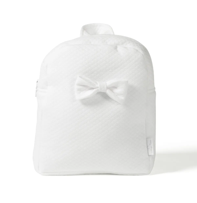 Altijd alles bij de hand met dit handige en stijlvolle rugzakje voor je kindje. Gemaakt uit zachte, doorstikte stof in een elegante losange structuur en verkrijgbaar in wit of camel/beige. Ideaal om mee te nemen naar de crèche of bij een uitstapje.