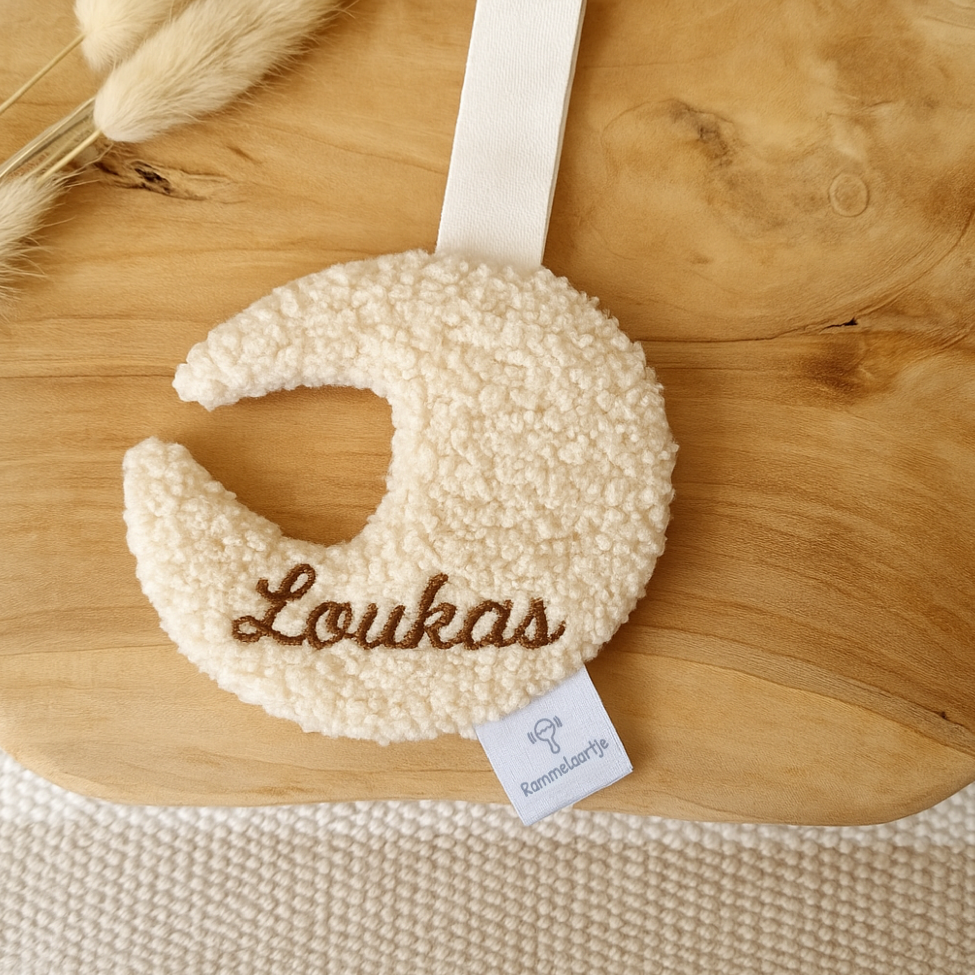 Speenkoord Knuffeldoekje Teddystof Maan - Gepersonaliseerd met naam